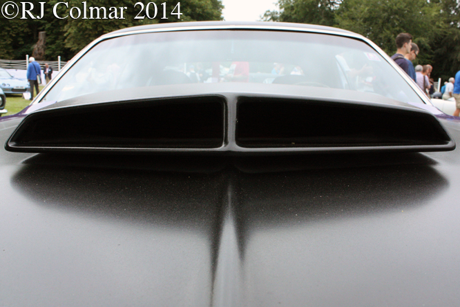 The, matt black only, T/A bonnet / hood was also made from fibre glass and was fitted with lighter hinge springs and pins at the front to keep it shut at speed. The large airscoop only directed air into the engine bay unlike the shaker hood on the 395hp six pack 440 Magnum which was attached to the 3 twin barrel carburetors and fed air directly into the throttle bodies.