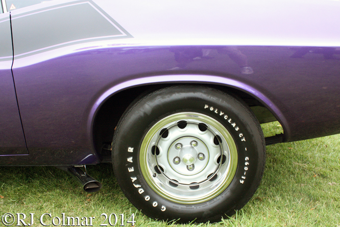 The Challenger T/A had an unusual stance thanks to the 15 inch front wheels being fitted with F60 size tyres at the front and wider taller G60 tyres at the rear. This was the first US car for civilian use to be fitted with different size tyres front and rear and is said by some to have contributed to the cars tendency to understeer / push.