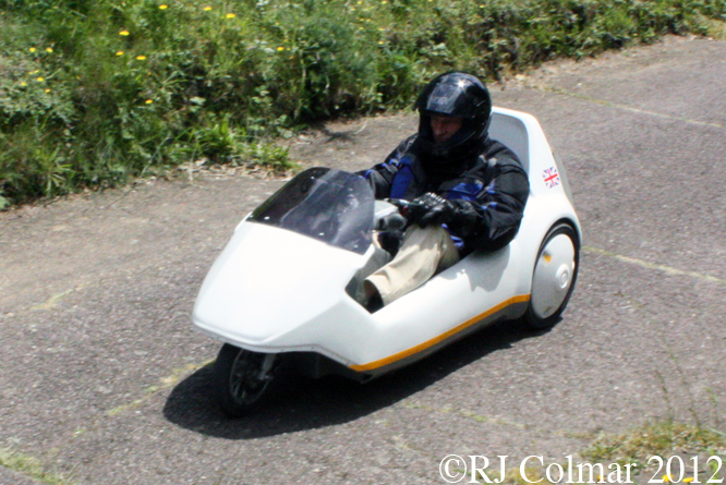 Restricted to a top speed of 15 mph, in order not to be categorised as a motor vehicle on British roads, the Sinclair C5 was a hybrid powered by an electric motor or pedal power. Despite being launched with the aid of Stirling Moss, in 1985, it was the object of much derision with a lamentable performance climbing hills. I suspect this model may have a turbo conversion with 24v electrics because it effortlessly whistled up the Test Hill without the aid of pedal power and appeared to be traveling well over 15 mph.