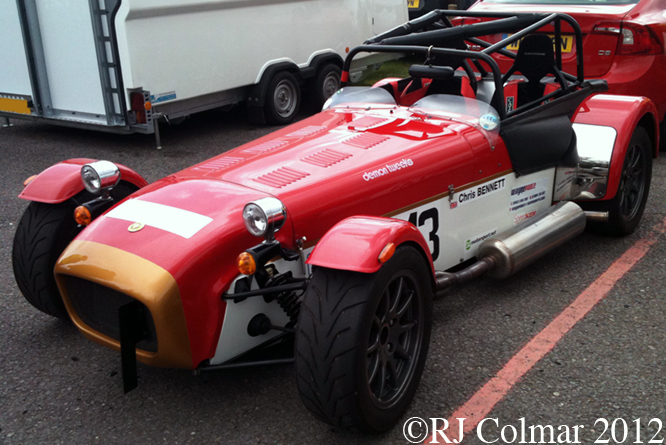 The Gold Leaf Team Lotus tribute liveried #143 Caterham 7 Roadsport, above, of Chris Bennet came in 5th in the smaller capacity Road Going Specialist Production Cars Class.