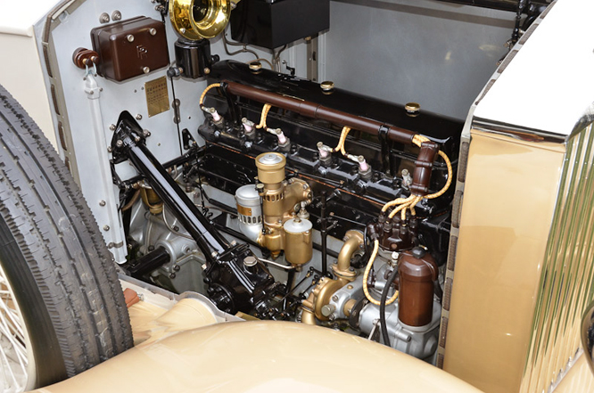 The Twenties mono block 6 cylinder 3127cc / 190 cui motor on the early models was fitted to a three speed gearbox with central gear change while later models like the one featured today had a four speed gearbox with right hand gear stick.