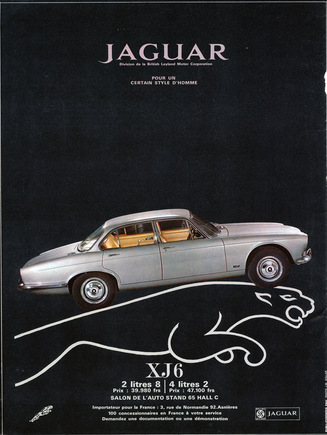 Finally appealing “for some certain style of man” is this Jaguar XJ6 ad with a photo credited to JM Kollar dating from 1970, I have posted are two further XJ6 ads dating to 1971 and 1973 when production of the Series 1 XJ6 came to an end.