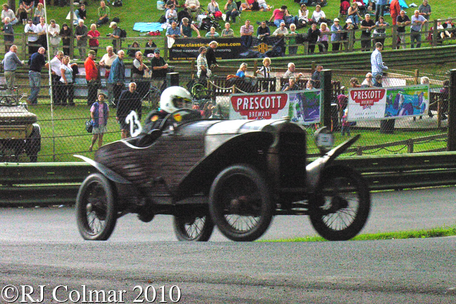 Lady Carolyn Venables-Llewelyn, wife of VSCC club President Sir John Venables-Llewelyn, is seen braving inclement conditions driving today’s featured 1923 Amilcar CC Sport at Prescott.