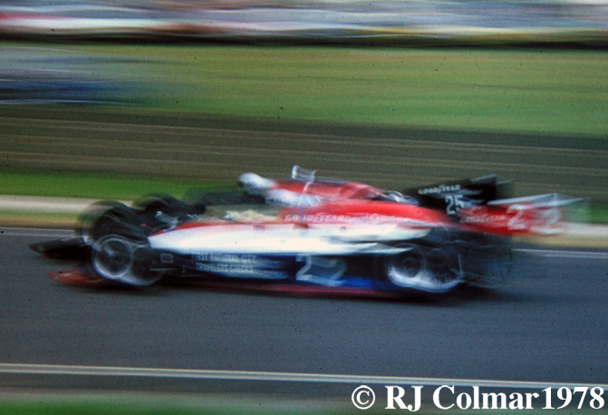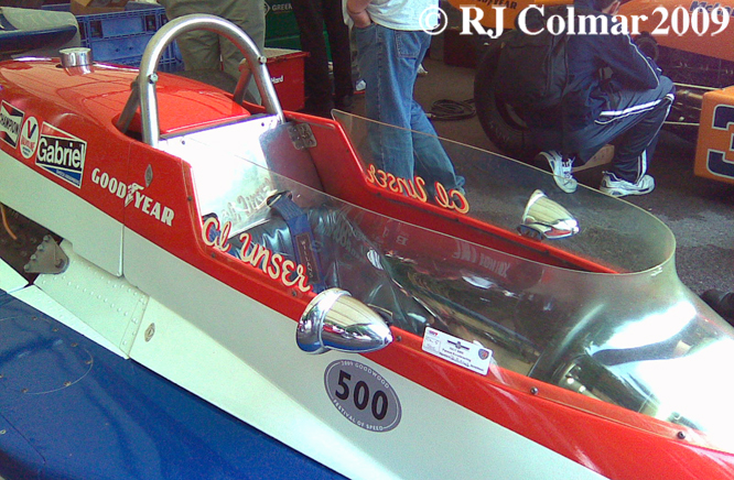 Having won the 1978 Indy 500 Al Unser also won the two other 500 mile races in the USAC series at Pocono and Ontario becoming the first winner of the ‘Triple 500 Crown’. Al is seen driving the car above in the Daily Express 200 at Silverstone, England battling for the lead with Danny Ongias.