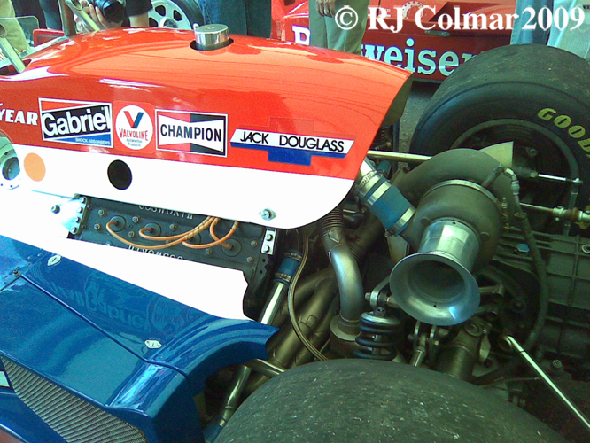 The ’78 Indy 500 was the first of ten that was won by a car powered by a turbocharged development of the 3 litre / 183 cui Cosworth DFV that dominated in Formula One from it’s introduction in 1966 to 1981. To meet the USAC regulations the DFV was downsized to 2650 cc / 161 cui and fitted with a Garrett turbo charger.
