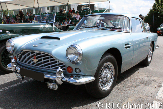 DB4’s were built in five distinct series, the model seen here at Brooklands Double Twelve meeting last year is a 1963 Series V, first seen in 1962, which is distinguished by having a longer and taller body on smaller diameter wheels than the first four DB4 series.
