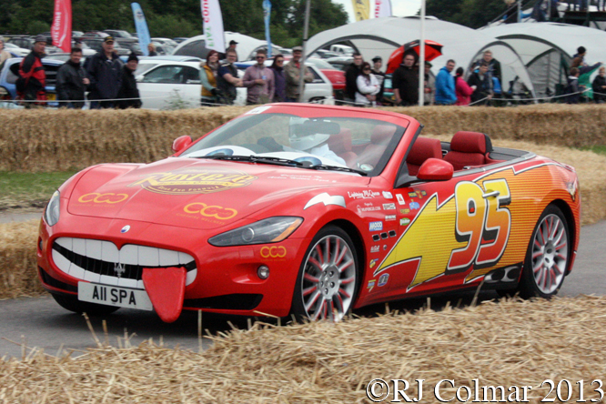 I’m not sure if Mr Hilton uses his Maserati GranCabrio, seen here being driven by Andrew Philips at the Cholmondeley Pageant of Power, as a daily driver, but if he did I am sure his customers kids would have no trouble identifying with the man with the Lightening McQueen car.
