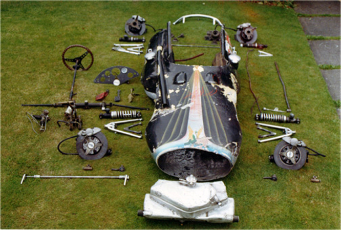 Chassis #R5 was taken back to the Team Lotus Factory and stripped down to the bear monocoque which was put aside awaiting recycling when Lotus mechanic Cedric Selzer was given permission to take the wrecked monocoque, along with some redundant parts, home.