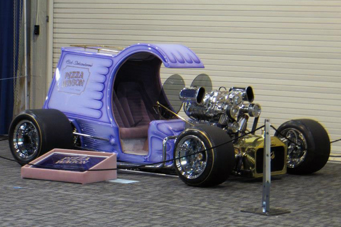It’s not every day I see a Pizza Wagon with two Rootes Superchargers and outsize slick tyres, this example is billed as a 1919 Ford C Cab and was built by Bob Schoonhoven and is said to feature Dan Wood suspension, unfortunately the Pizza Van is a show car and not street legal.