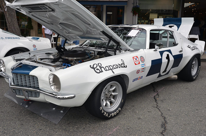 Today’s featured car, seen in these photographs taken by Geoffrey Horton, is believed to be the only one of the three 1970 Chaparral Trans Am Camaros still remaining.