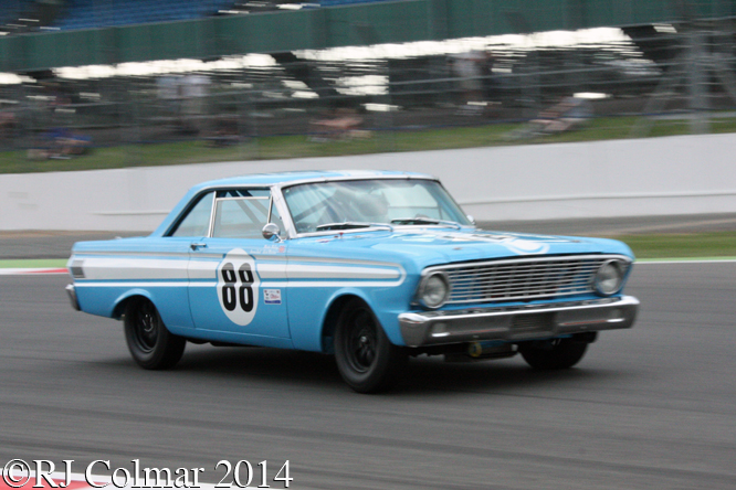 The longest race of the day, half an hour, was the Tom Cole Trophy Race for 1950’s sports cars, won by Darren McWhirtter in the 1954 #64 Lagonda V12 Le Mans seen lapping the 1952 #10 Nash Healey Le Mans driven by Sam Stretton.