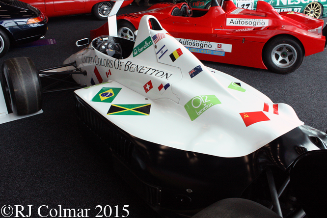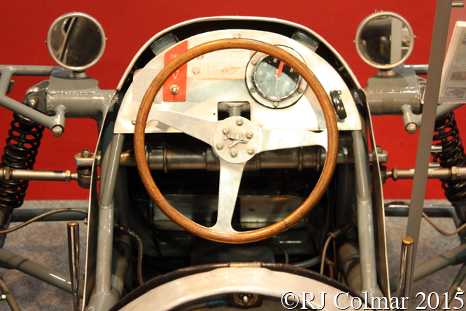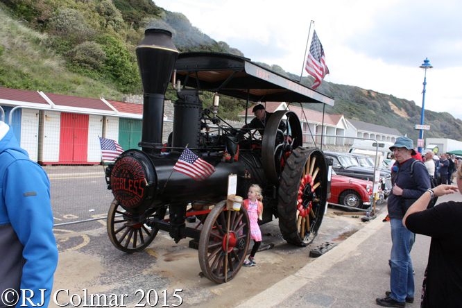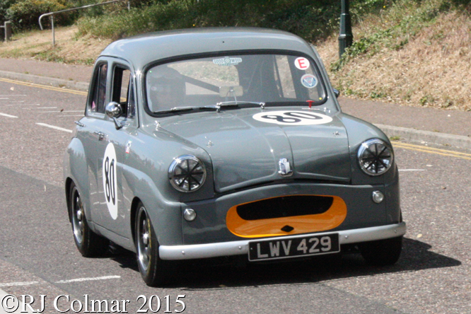 James Dodge like Peter pedaling a BMC Farina engages in a bit of rim riding hoping he will not get T boned by the green #632 Ford Cortina driven by Kallum Reed.