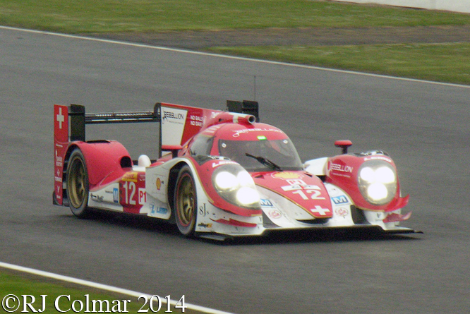 The LMP2 class pole was won by Roman Rusinov, Oliver Pla and Julien Canal driving the #26 Morgan – Nissan, seen with Oliver Pla driving through Becketts above, from the similar #47 Oreca 03 badged example driven by Mathew Howson, Richard Bradley and Tsugio Matsuda. On their way to a 5th place finish overall the #26 had to change their nose twice, to repair damage the first time and then fit one with the correct dive planes the second, but managed to catch and pass the #47 which received a 10 second penalty for speeding in the pit lane and was later penalised a lap for unsafe release from a pit stop.