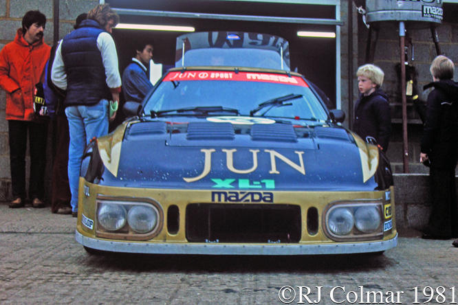 Three years later today’s featured car the RX7 253i made it’s debut sans 252i type rear wing at the 1981 Silverstone 6 Hours, as seen in these photographs, where it was driven to a IMSA GTU class win and 8th place overall finish from 23rd on the grid by Youjirou Terada and Win Percy.