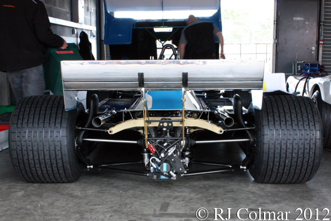 Jean Pierre Jarier put the DN5 #DN5/1A, seen here in the first third and sixth photographs at Silverstone Classic 2013, on pole on the cars debut in Argentina, but the car never started having stripped the crown wheel and pinion in the gearbox on the warm up lap.