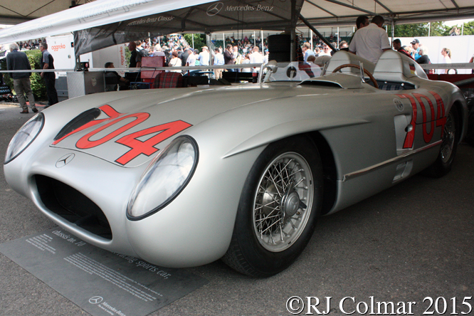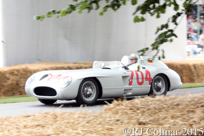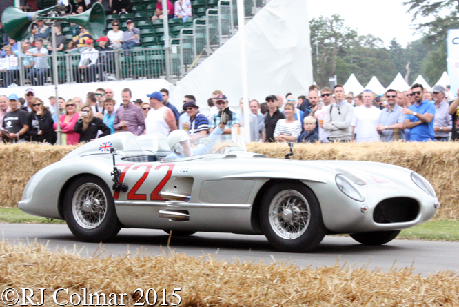 Hans Hermann is seen at the wheel of #no.10 at Goodwood Festival of Speed, where the Mercedes Benz blurb indicated that #no.10 has also carried the #658 Juan started the 1955 Mille Miglia with on occasion.