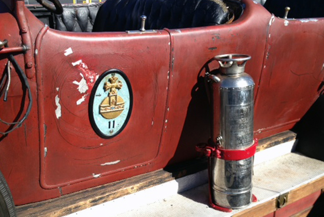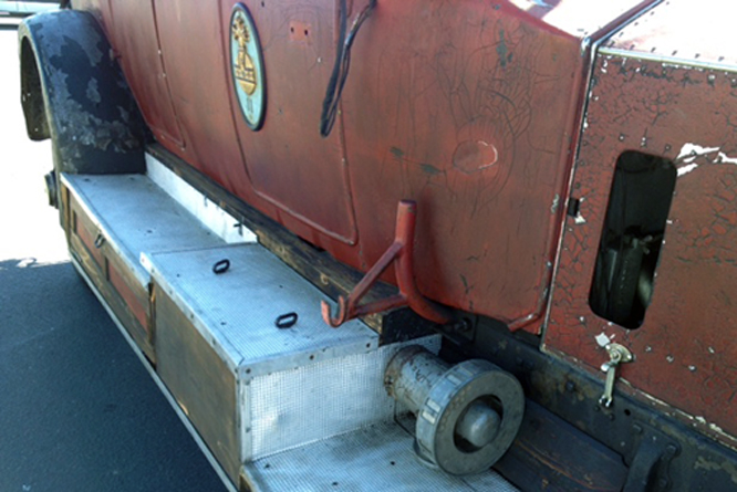 Not withstanding the cars general red colour there are several clues that this car has seen service as a fire engine…