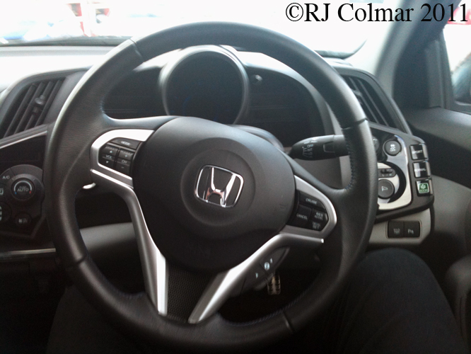 Once I had entered the CR-Z my immediate sensation was one of security as my Marblehead acquaintance Red Farmer might have observed I was sitting in a ‘cage’, a safety cage that is and that is good when compared to one city car that I have driven this year. Despite the fact that the CR-Z is a two plus dog only automobile I had no feeling of claustrophobia, in fact the exact opposite I felt as comfortable sitting in the CR-Z as I do in my Landladies German estate / station wagon.