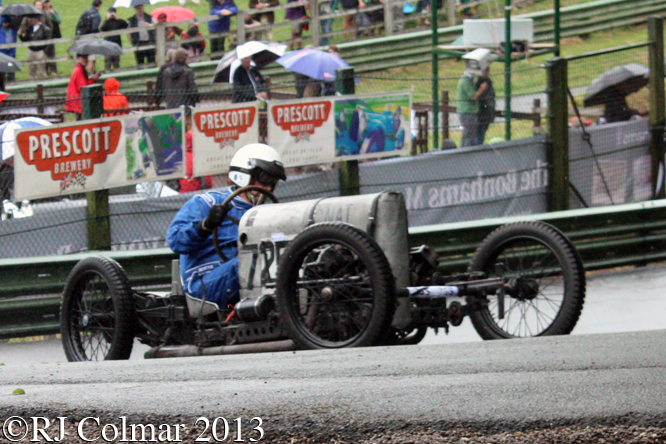 Dougal Cawley headed the opening lap of the Fox & Nichol Trophy in his GN Ford known as Piglet, but after 12 mins it was a surprised Rudiger Friedrichs who took the flag on his debut on the 1932 #138 Alvis Firefly seen above in third place.