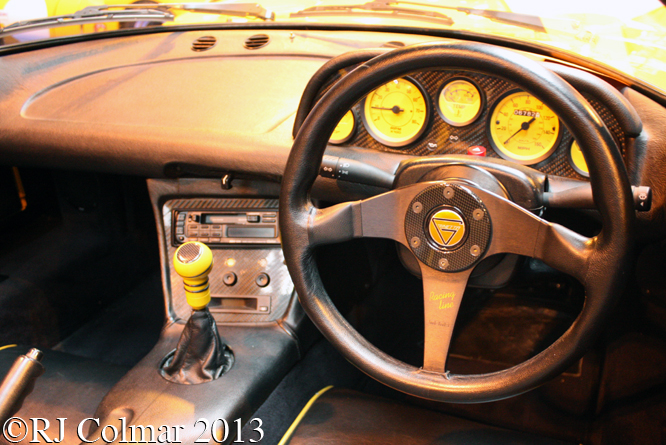 Len Bailey who was based at Gomm Metal Developments in Woking did the design work, Gomm did the metal work, the fibre glass body was constructed by Protoco, Aston Martin Tickford supplied 5,340 cc / 325.8 cui V8 engine and the whole car was prepared for competition by Micheal Cane Racing.