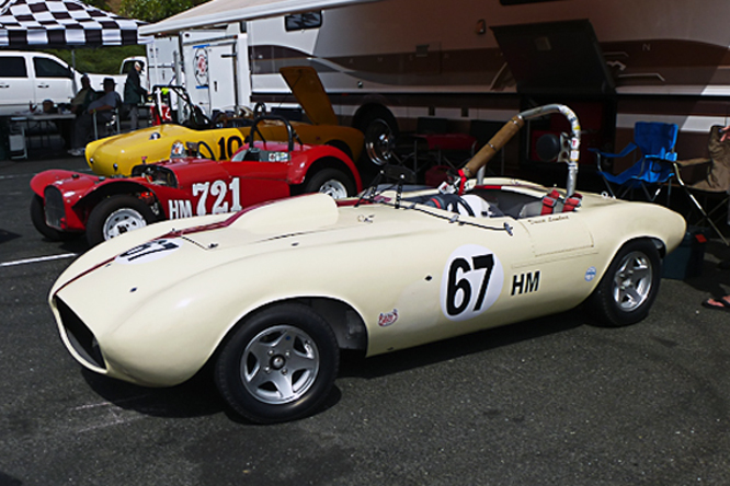 California is the home of the fiber glass special and the white racer above looks like one of the majority I have not heard of. The HM sticker tells us it probably ran in SCCA events for vehicles up to 750 cc / 45.7 cui. Does anyone recognise this pint size racer ?