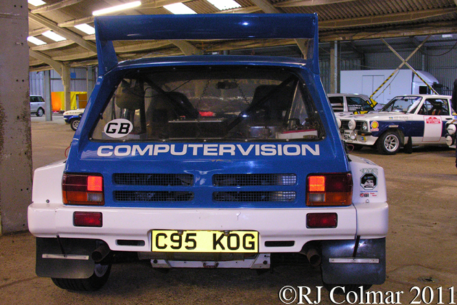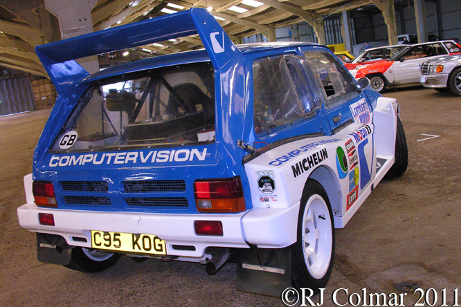 The car Austin Rover wanted to promote was the recently launched Metro and because this was a competition vehicle the MG brand was the natural version to promote. Patrick head and his team built a space frame chassis that housed the motor behind the driver and equipped the car with four wheel drive. Apart from the roof panel, windscreen, doors, front grill and lights which were MG Metro sourced every other part of the car was competition spec.