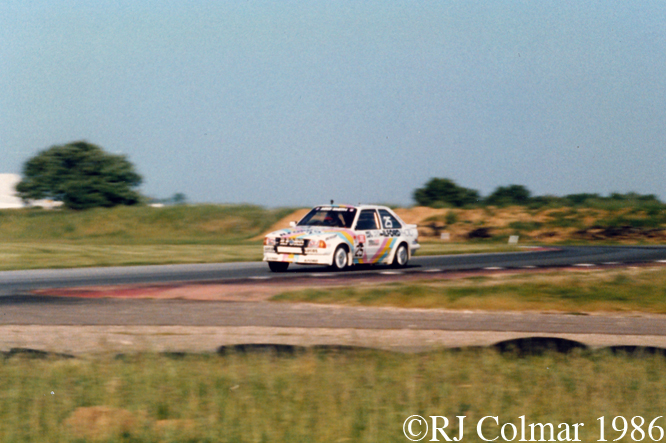 In the top photo national radio DJ Mike Smith and Lionel Abbot shared the #25 to win the 1986 Willhire 24 hour race at Snetterton at their second attempt becoming the first two driver team to win the race since it’s inception in 1980. The #32 was driven by Karl Jones, Patrick Watts and Chris Creswell in the 1987 Willhire 24 hours qualifying 2nd, to a Ford Sierra RS Cosworth, and finishing sixth, third in class after a late driveshaft failure. By 1989 the Escort RS Turbo’s driven by Vaughan Richmond, #44 seen at Brands Hatch and Jonathon Harrison, #60 seen at Silverstone, were overwhelmed in class B by half a dozen faster BMW M3’s.