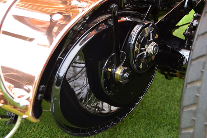 James Dodge like Peter pedaling a BMC Farina engages in a bit of rim riding hoping he will not get T boned by the green #632 Ford Cortina driven by Kallum Reed.