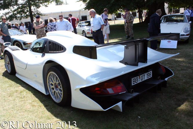The big improvement of the 911 GT1-98 over the previous models was the location of the engine form the standard 911 behind the rear axle line location to a more beneficial ahead of the rear axle, this benefited the handling by reducing the polar momentum, the force of weight outside the front and rear axle lines and by allowing venturi to be built into the rear body work which helped suck the car to the ground as it traveled with out sacrificing too much by way of top speed.