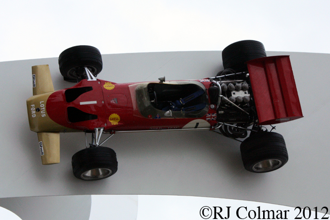 The car seen above is Lotus #R6/2 the second car to carry the #R6 chassis plate. The first incarnation of #R6 was the first 49 to be built to ‘B’ spec. Unfortunately it was written off by Jackie Oliver during practice for the 1968 French Grand Prix, and in order to make use of existing travel documents the eighth Lotus 49 to be built was given the #R6 chassis plate and is known as #R6/2. Some parts of #R6/1 damaged beyond repair by Oliver are thought to have been used in the replacement #R6/2 seen here, Rob Walkers privately entered 49 #R7, and the #R12 show car built for Ford which was donated to the Donington Museum.