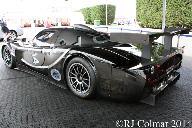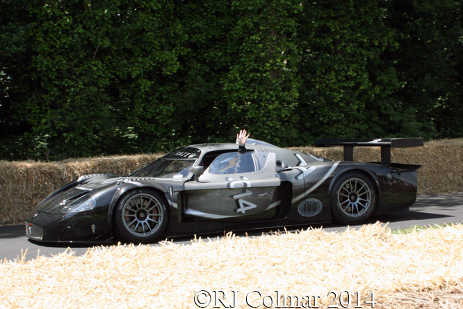 The chassis for the MC Cent 100 was a ‘spare’ at the Maserati factory that became the first new MC12 to be built since 2005. The one off Cent 100 carries special paint work celebrating Maserati’s 2014 Centenary depicting Alfieri Maserati driving a Tipo 26, Stirling Moss driving a 250F and a map of the Goodwood Hillclimb on which Michael Bartels finished 2nd at this years event driving today’s featured car.