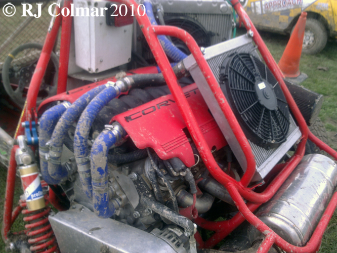 The National Autograss Sport Association (NASA) Class 10 is for open wheel vehicles with motors over 2065 cc / 126 cui with no limits on the tuning. Adrian’s car is fitted with an all aluminium (US pronunciation) 5,665 cc / 345.7 cui LS6 engine more usually found at home in the front of a Chevrolet Corvette.