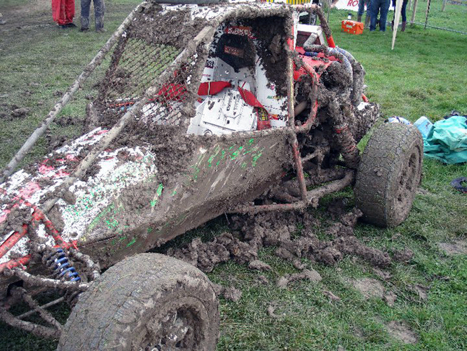 Lighter than a Formula One car at 600 kgs / 1323 lb and with around 480 hp at the rear wheels transmitted by a two speed gear box the #SS11 Xtreme Chevrolet is capable of over 100 miles an hour on 1/4 mile muddy grass tracks thanks to the grip afforded by 15 inches of rear suspension travel.